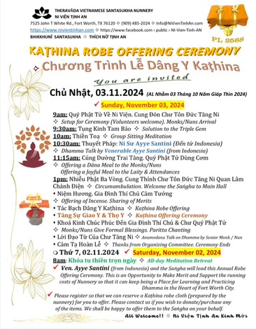Chúng tôi chân thành cảm ơn tất cả quý Phật tử đã tham dự và phát tâm cúng dường, làm cho buổi lễ Kathina năm nay trở nên đầy ý nghĩa. Nguyện cho công đức này mang lại bình an, hạnh phúc và giác ngộ cho tất cả chúng sinh!
