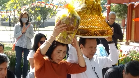 Trong buổi lễ, các Phật tử thành kính dâng y, vật phẩm, và tứ sự lên chư Tăng Ni như một hành động bố thí và bày tỏ lòng tôn kính. Buổi lễ diễn ra trong không khí trang nghiêm, hoan hỷ và ngập tràn những lời cầu nguyện cho hòa bình và trí tuệ.